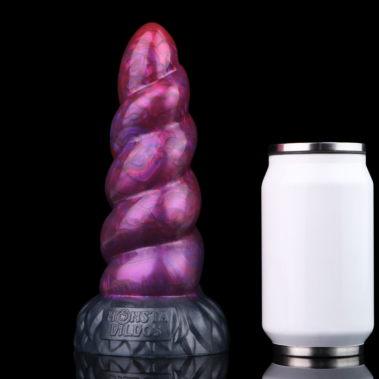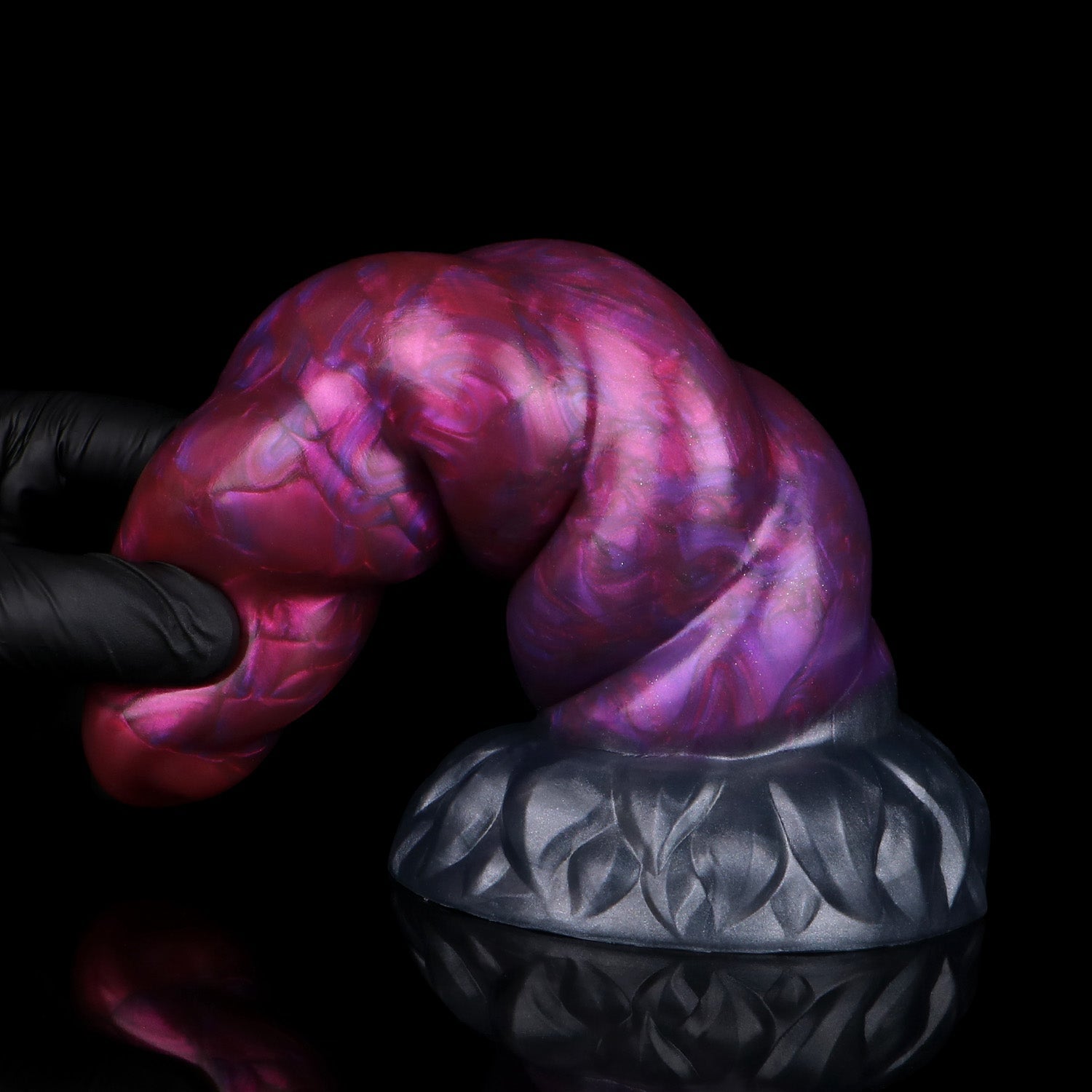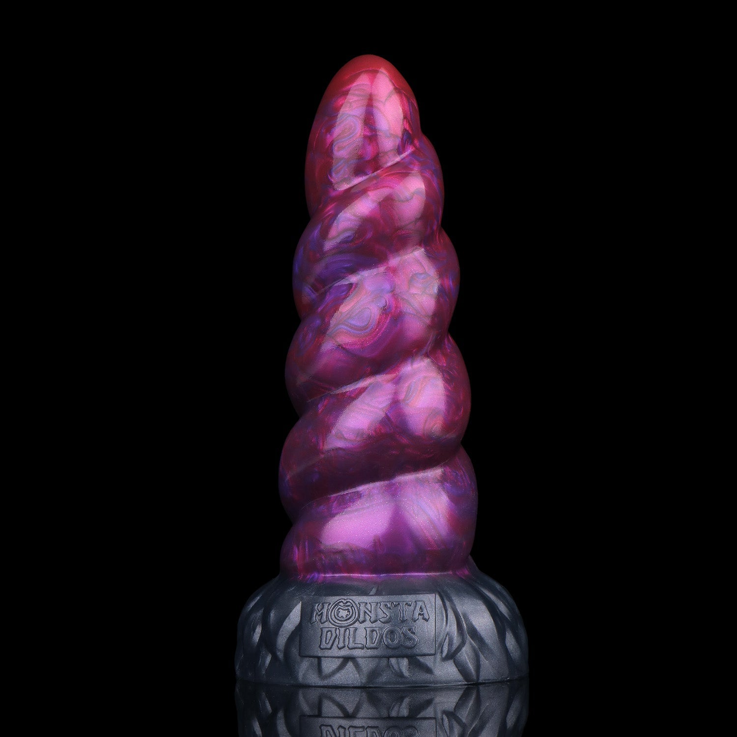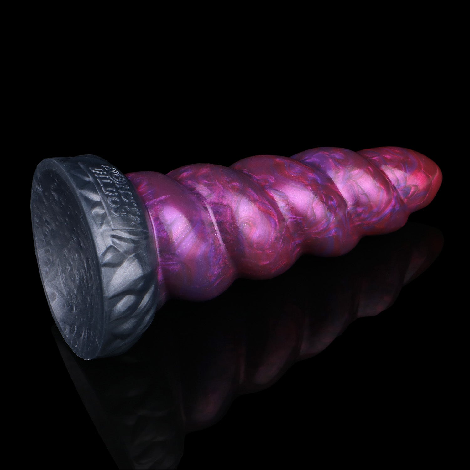 The Adrenaline Edition surges with vivid motion - a dark gunmetal base shot through with metallic purples and crimson streaks that twist along the horn’s spiral. Each turn of this purple dildo catches the light like lightning through storm clouds, giving the piece a sense of power in motion. With the elegant form of this unicorn dildo the colours feel alive - a fusion of grace and intensity, where beauty meets raw energy.